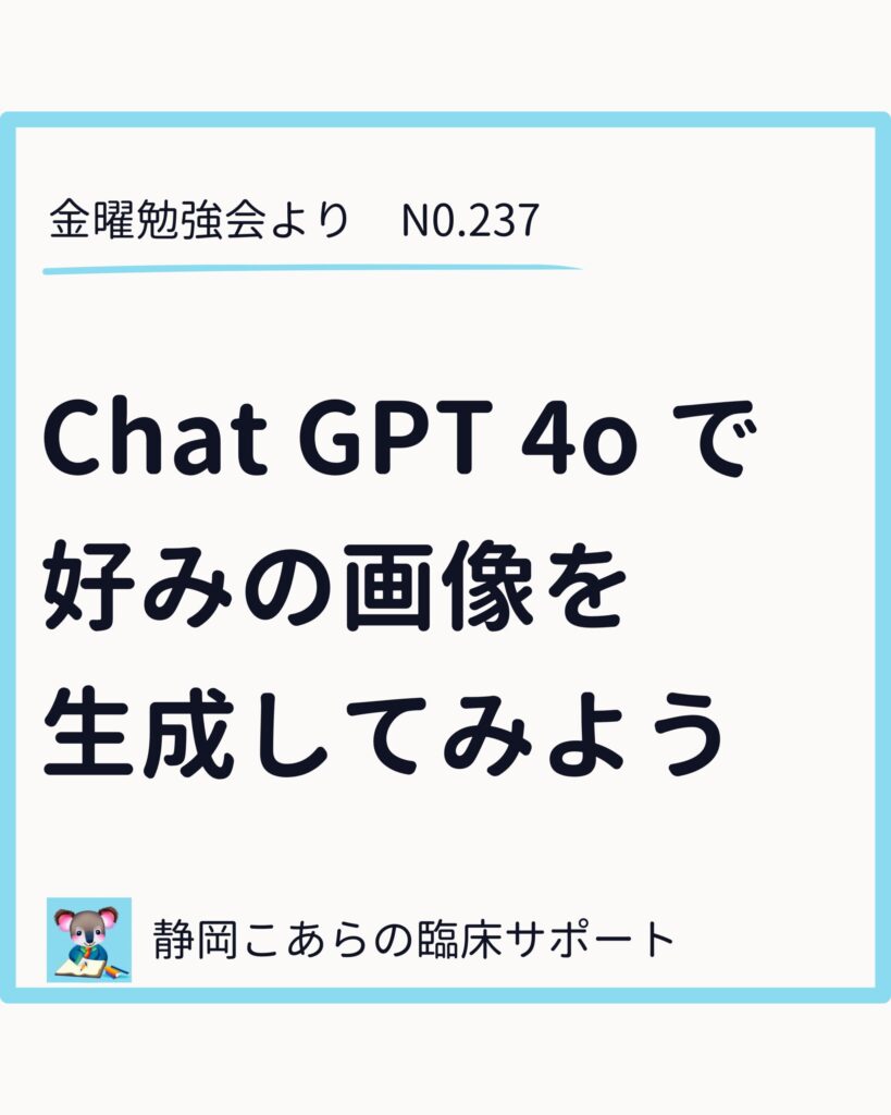 ChatGPTの画像生成は、専門知識がなくても扱えるのが大きな魅力です。研修医への症例説明、看護スタッフ向けの教育資料、院内ポスターなど、医療現場には視覚表現が役立つ場面が数多くあります。まずは楽しみながら触れてみることが、理解を深める近道になります。