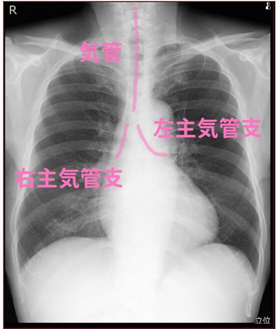 左右の主気管支の角度が違うのは有名ですよね。