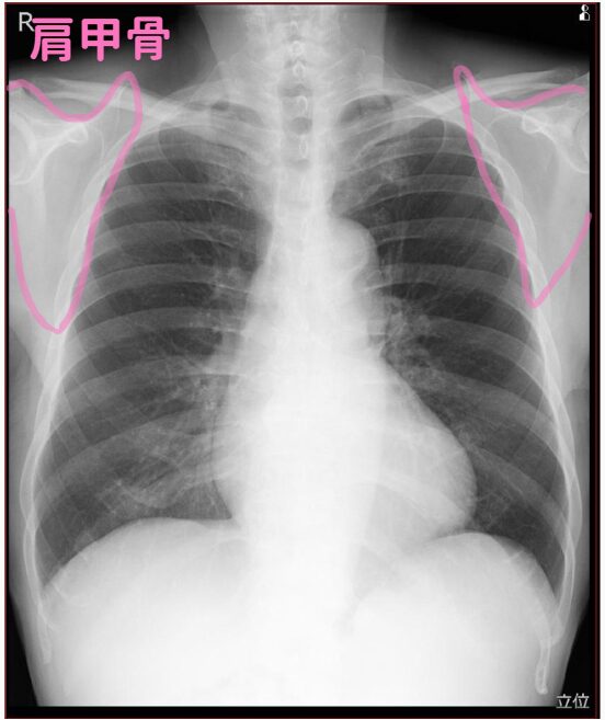 これは両腕を広げて、肩甲骨が肺野に入らないようにしているんです。
