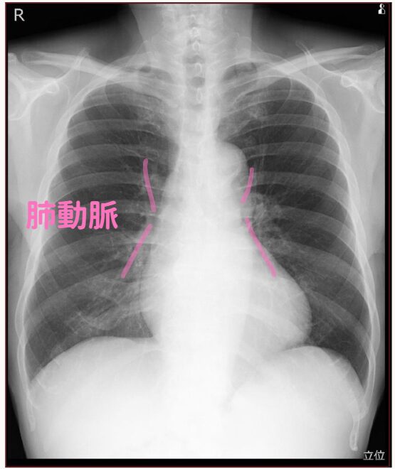 肺動脈に関しては、この陰影が肺動脈ということを知っていると良いことがあります。