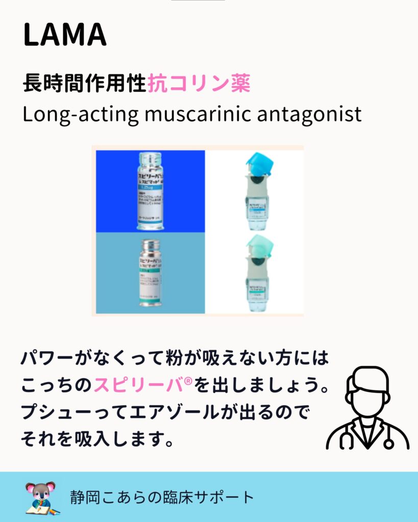 (1)LAMA:長時間作用性抗コリン薬(Long-acting muscarinic antagonist)