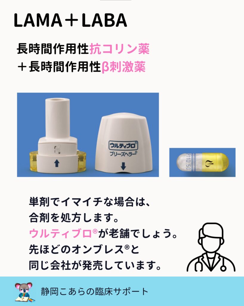 単剤で十分な効果が得られない場合、ウルティブロ®を使用します。