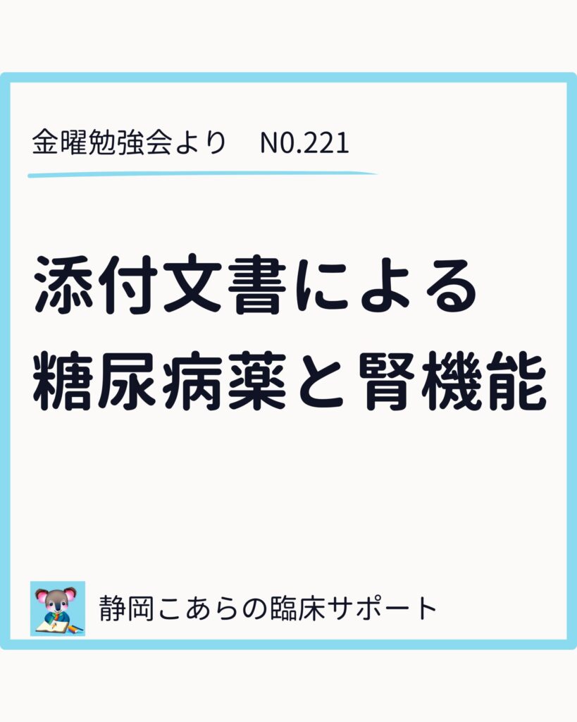 今回は、教科書ではなく添付文書を起点に、糖尿病薬と腎機能の関係を一度整理してみました。