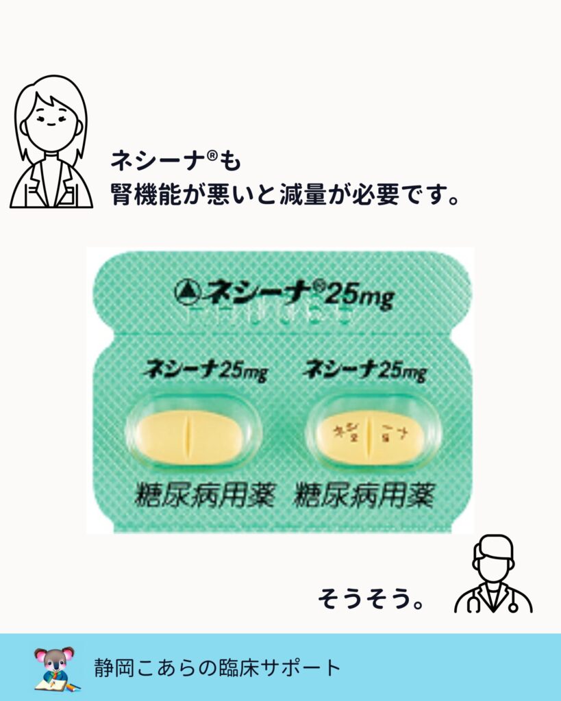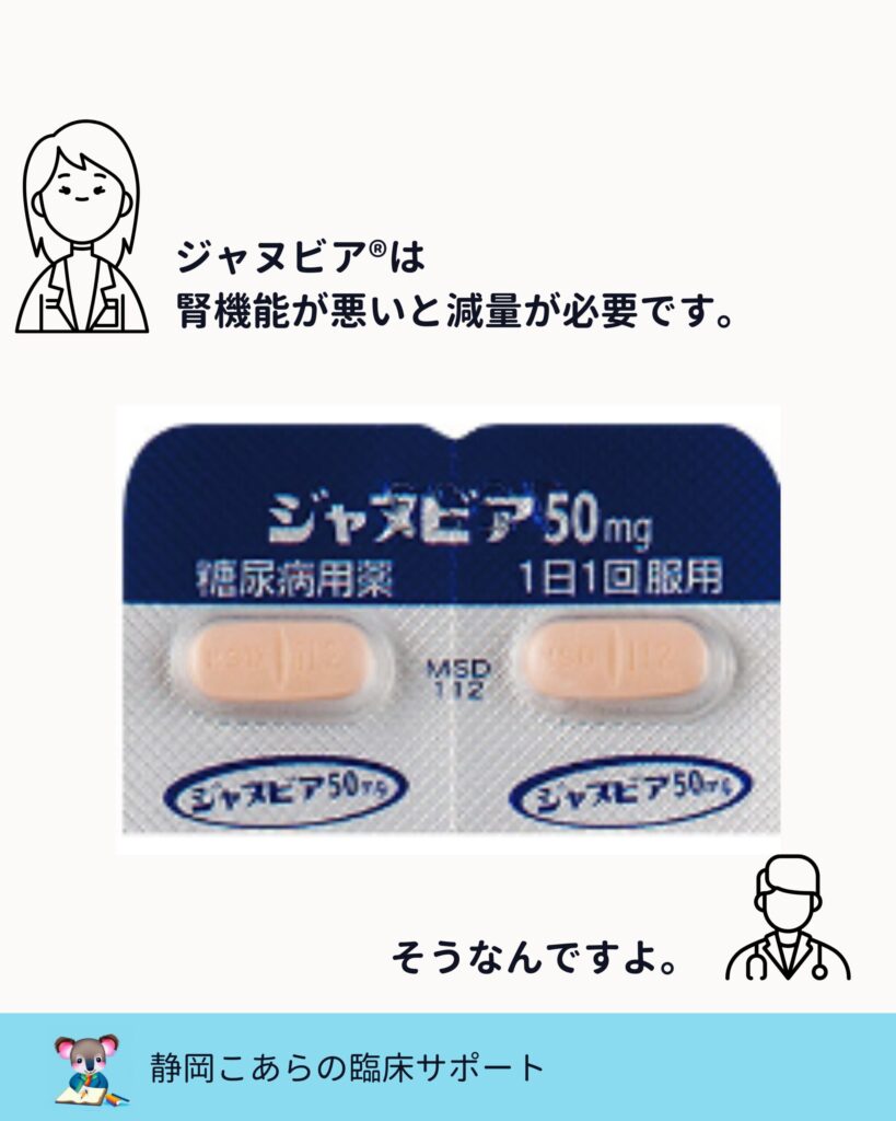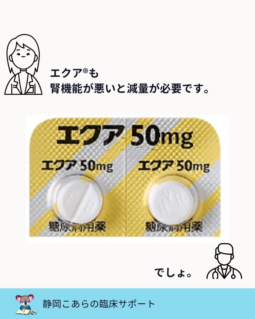 多くのDPP-4阻害薬は、腎機能低下時に減量が必要です。
