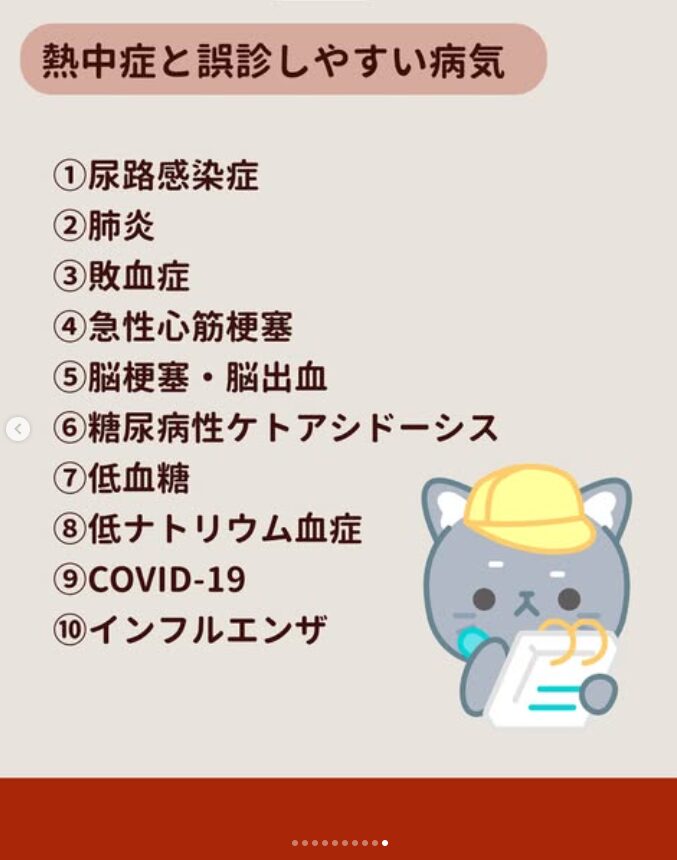 救急での最初の判断がその後の運命を大きく左右します。「熱中症かもしれないけど、もっと大事な疾患が隠れているかもしれない」と意識しながら動いてみてくださいね。