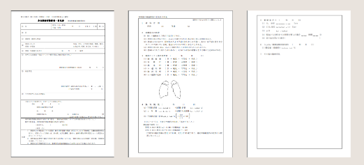 呼吸機能検査や動脈血液ガス分析(ABG)の結果を記載する欄があり、客観的なデータも重視されます。