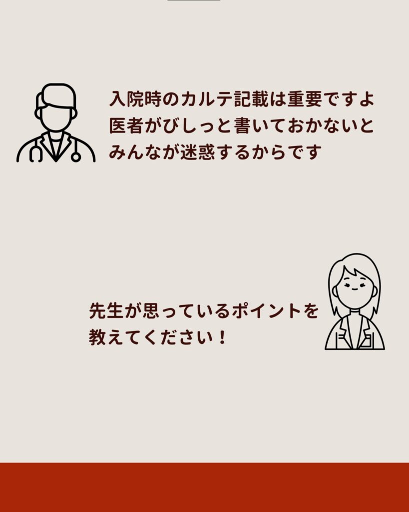 入院時のカルテは、医療チーム全員の行動を方向づける最初の設計図である。