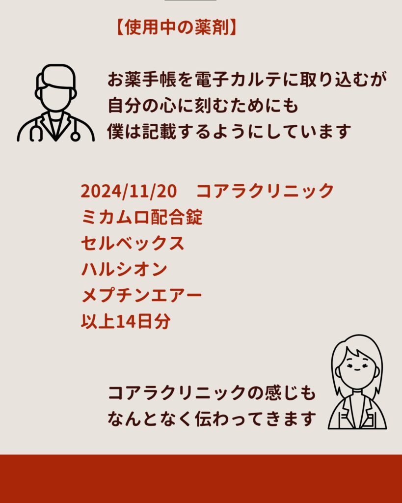 こあら先生のカルテ記載は、まさに「見えるチーム医療」ですね。