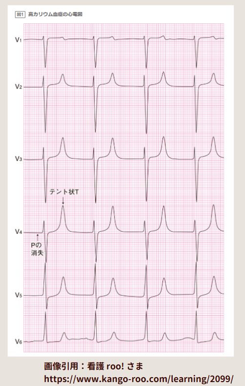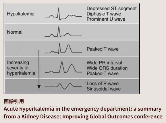 高カリウム血症では、心電図変化が命を救うサインになる。