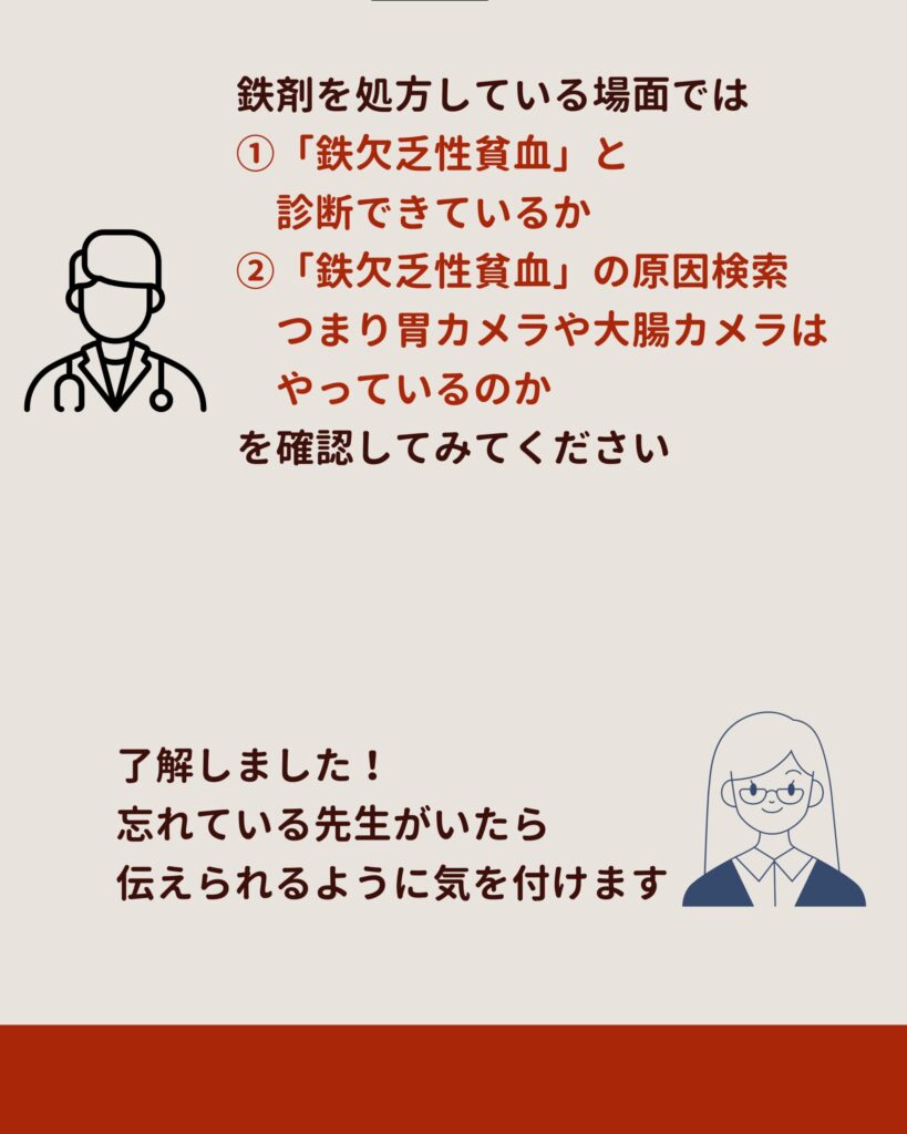 したがって鉄剤を処方している場面では、次の2点を確認しておくのが自然です。