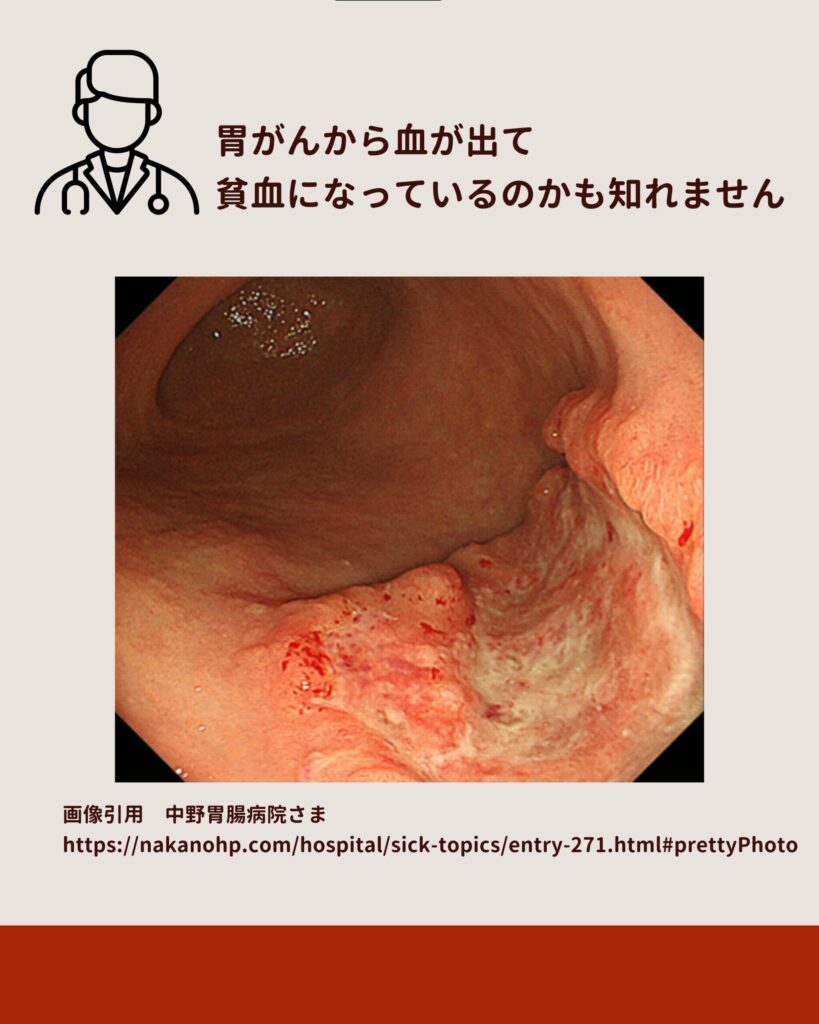 とくに胃がんや大腸がんによる慢性出血は見逃してはならない要因です。