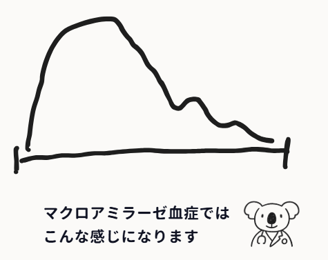 血清アミラーゼが免疫グロブリンと結合し、大きな分子(マクロアミラーゼ)を形成すると、腎臓からの排泄がうまくいかず、血中にアミラーゼがたまってしまいます。膵臓が悪いわけではなく、酵素が「大きすぎて流れにくい」だけ。患者さんの体の中では、静かにそうした現象が起きていることがあります。