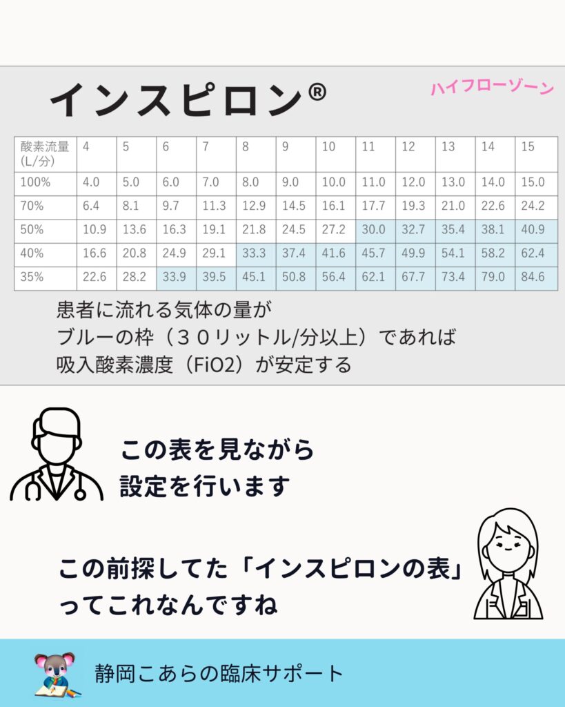 この設定表は、酸素療法を“感覚”から“理解”へ移すためには欠かせません。