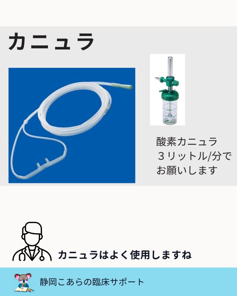 酸素カニュラは、日常の現場で最もよく使います。