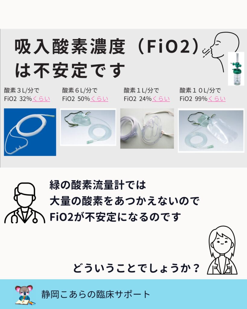 このギャップが、後述する“FiO₂が不安定になる理由”につながっていきます。