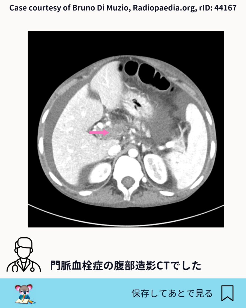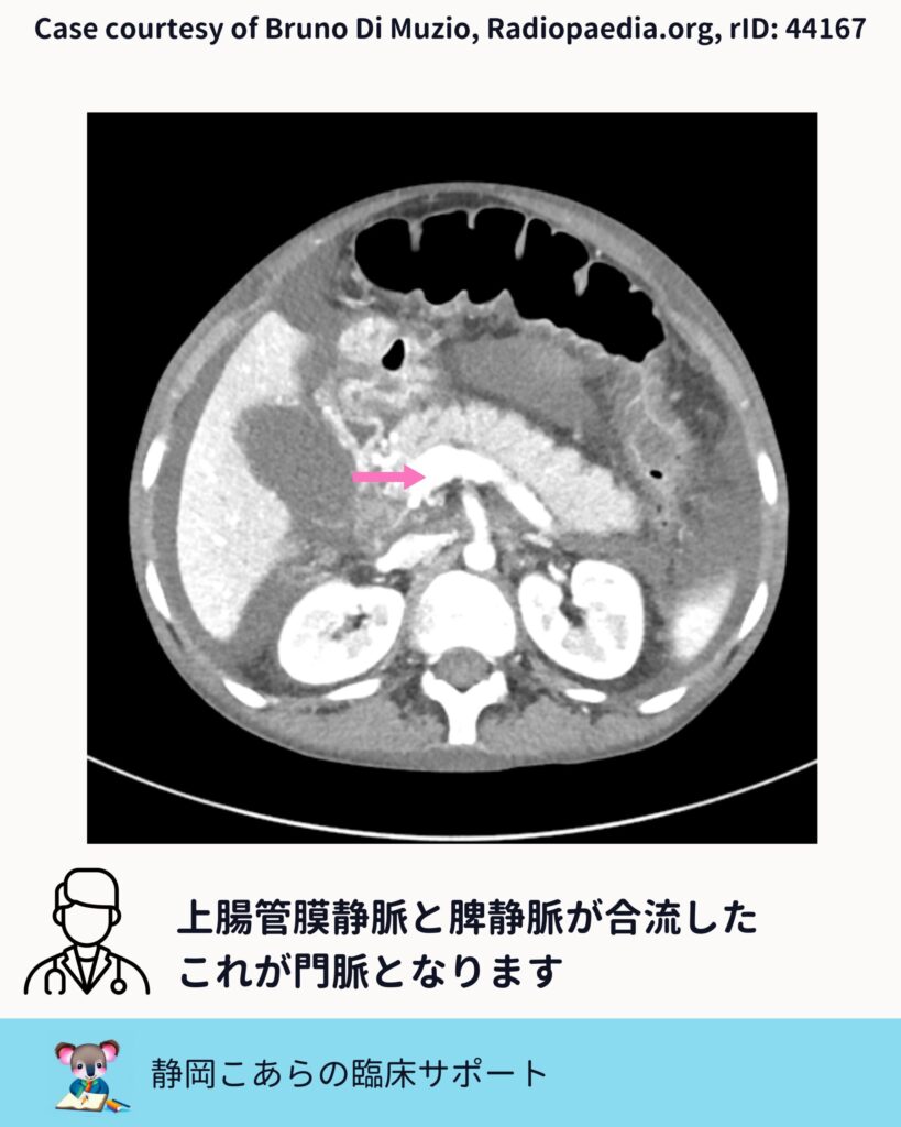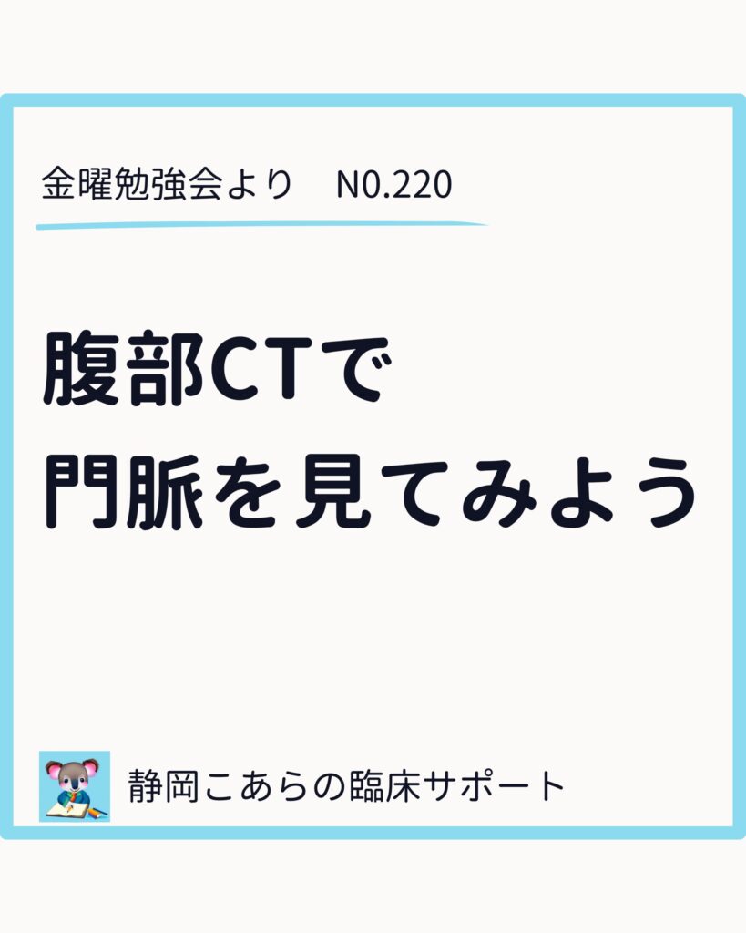今回の元ネタは、金曜勉強会で扱った腹部造影CTです。画像を一枚ずつ追いながら、門脈がどこから来て、どこへ向かうのかを確認していきます。