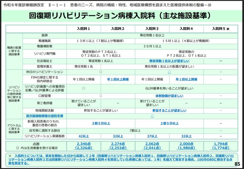 体制強化加算は医師配置を促進し、配置が標準化したことで廃止された。現在はアウトカム評価が中心となっている。