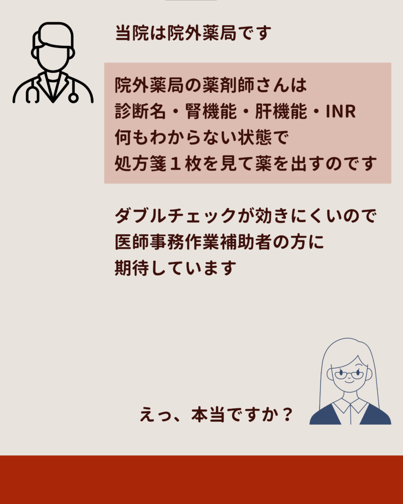 院外薬局の薬剤師は、診断名・腎機能・肝機能・INRなどの臨床情報を知らされず、