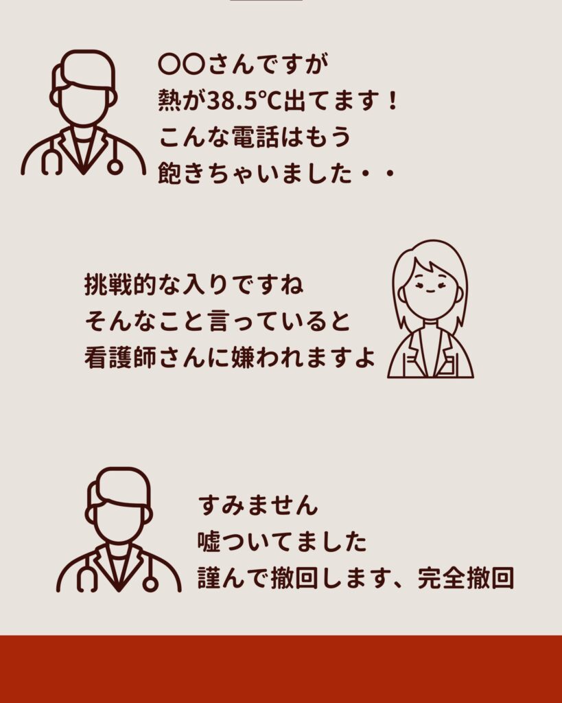 挑戦的な入りですね。そんなこと言っていると看護師さんに嫌われますよ。