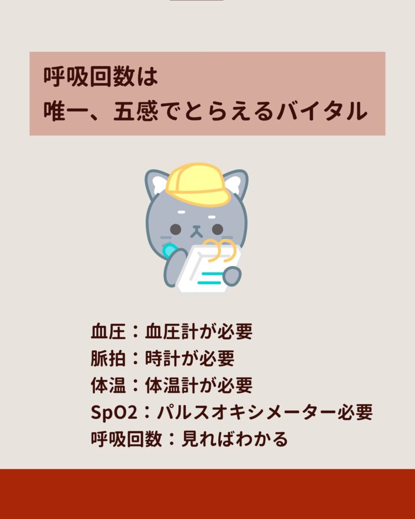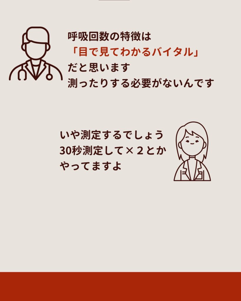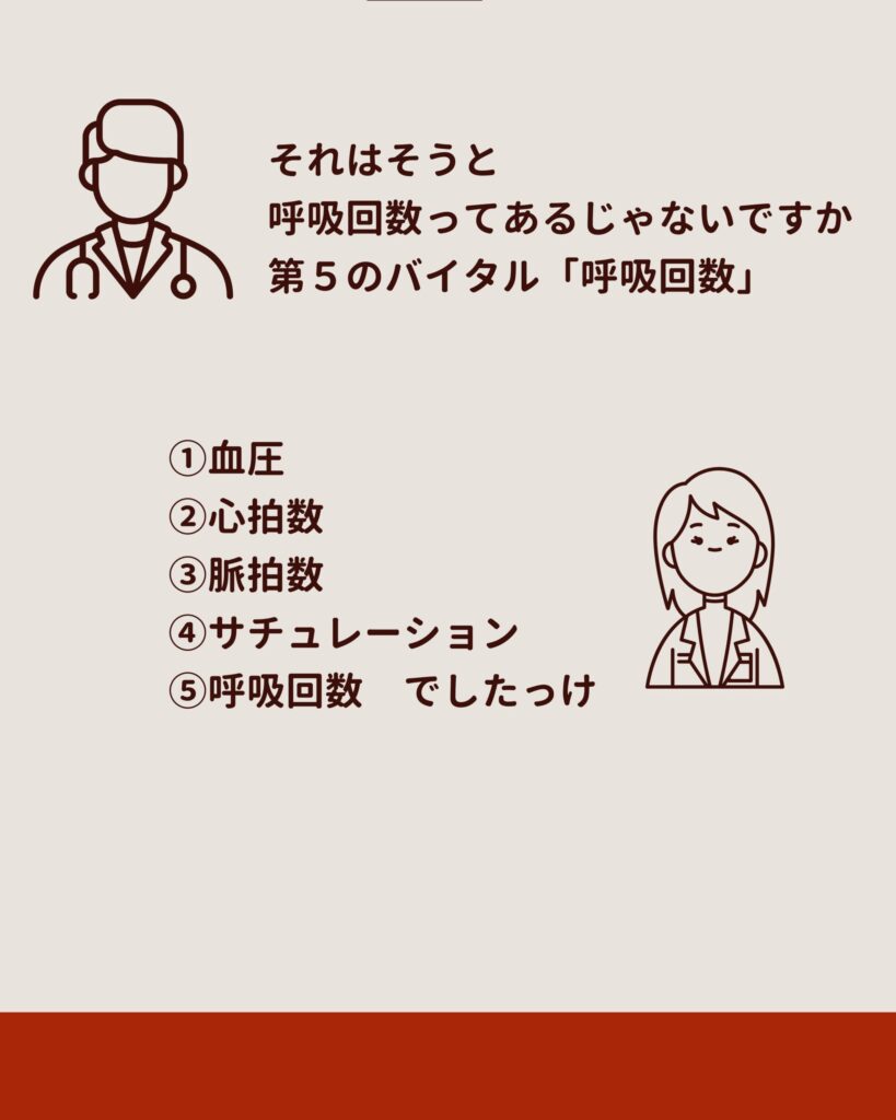 それはそうと、呼吸回数ってあるじゃないですか。第5のバイタル「呼吸回数」。
