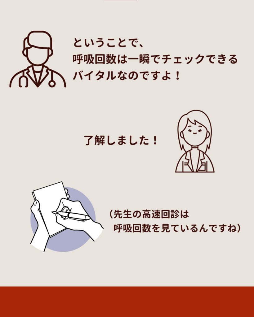 なるほど。ということは、呼吸回数は一瞬でチェックできるバイタルなんですね。